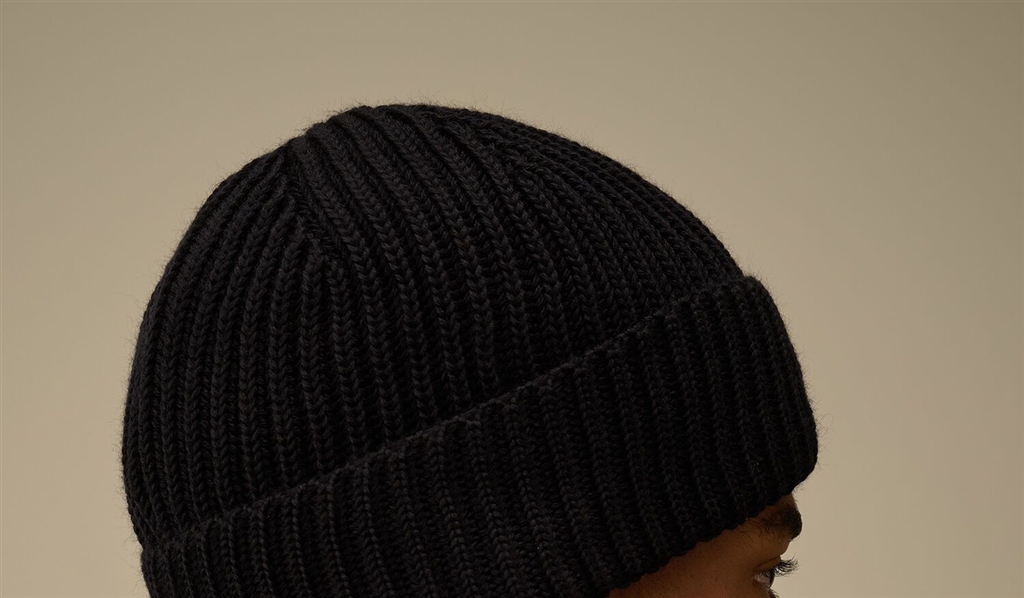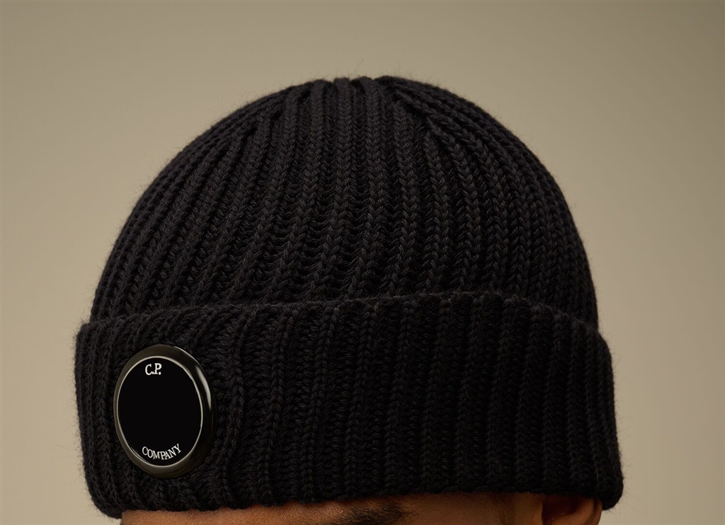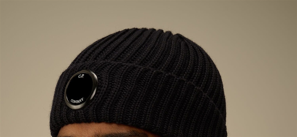 Beanie made of extrafine Merino wool, which guarantees softness and heat. Beanie presents a coastal jersey processing, aspect and the iconic lens of c.p. Company.