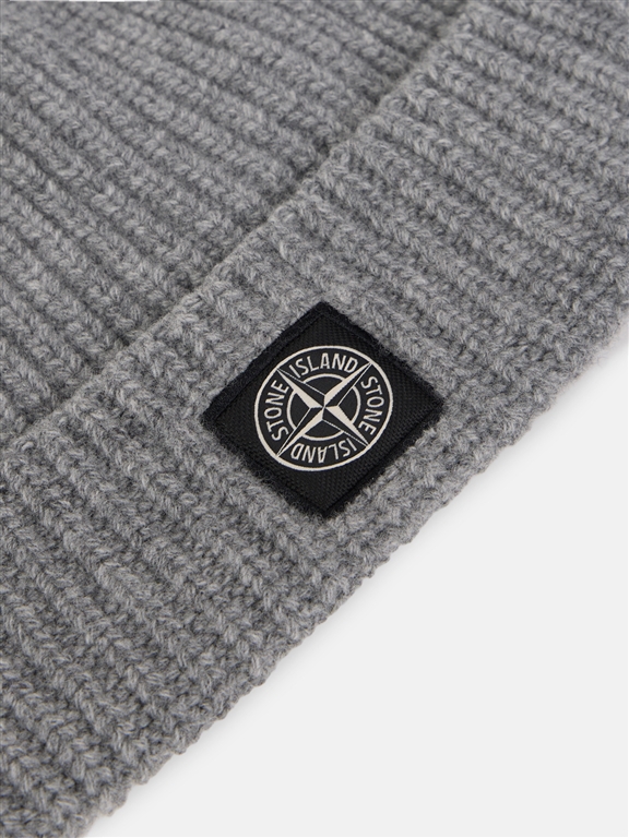 Beanie in light wool RWS Geelon with shaved jersey with ribbon and patch aspect with compass logo on the front. Fineness 5. BEAANIE IN LIGHT LANNA RWS Geelong. Shaved shirt. Fineness 5