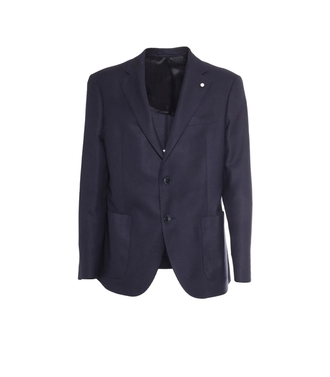 dark blue closure with two buttons applied pockets classic long sleeves revers