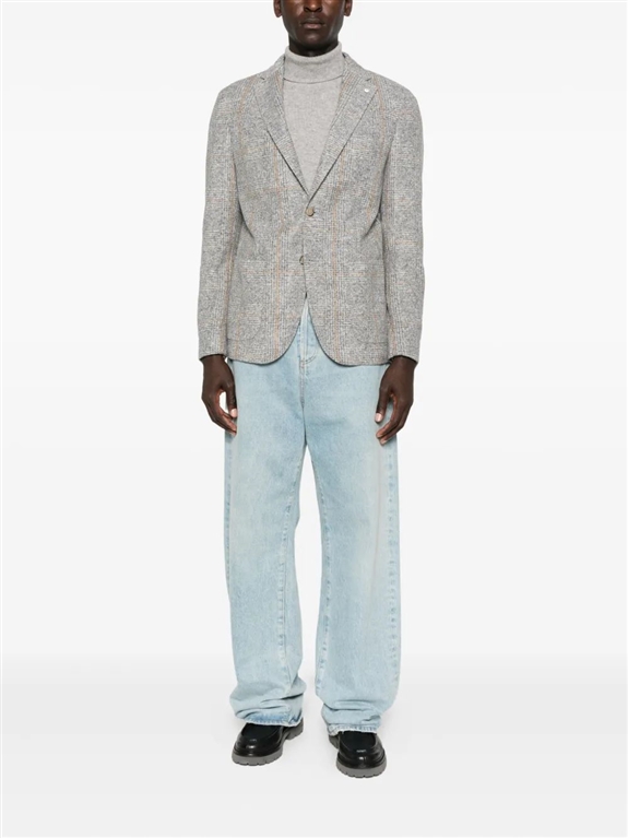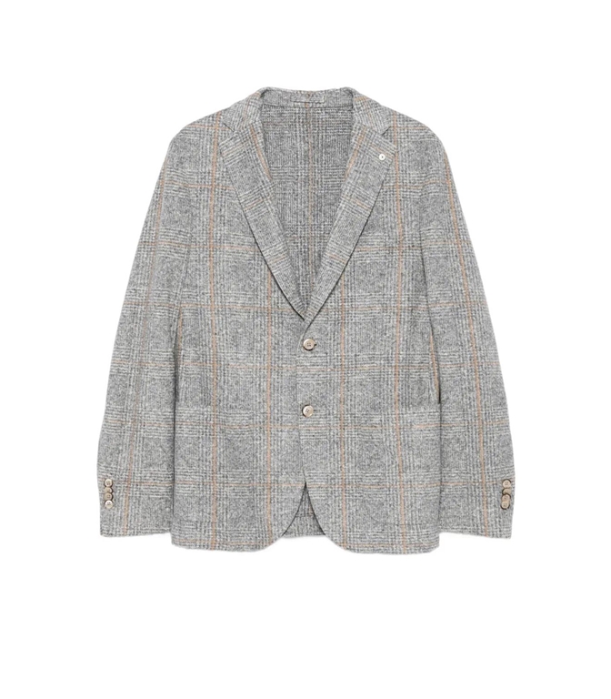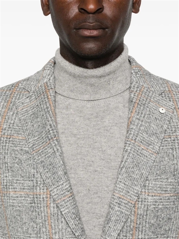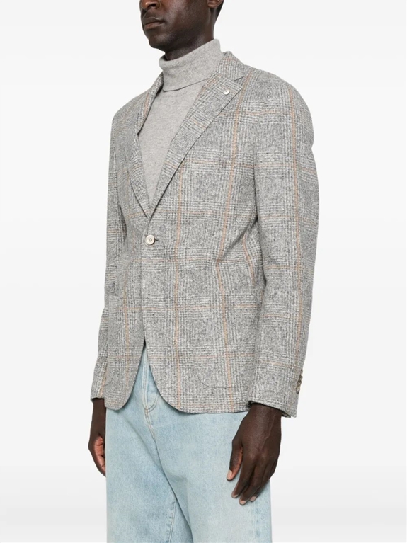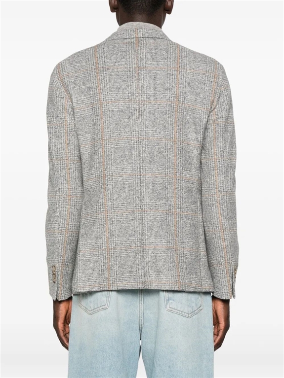Grey Checked Pattern Notched Lapel Long Sleeves