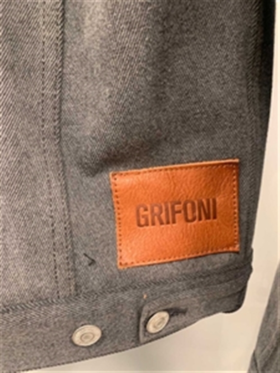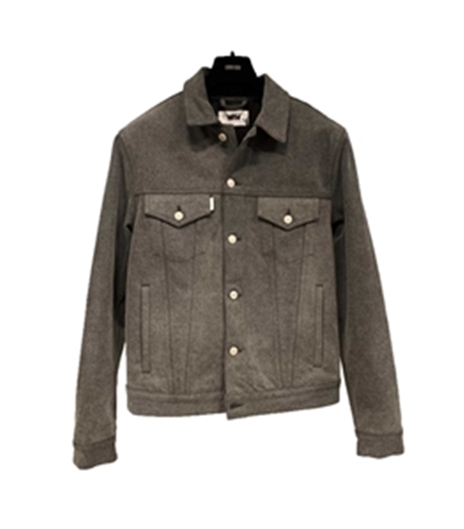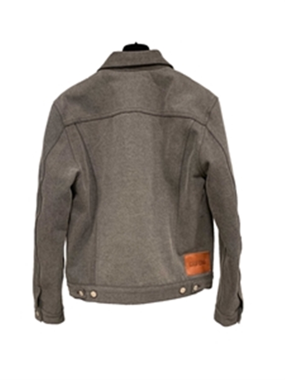 Gray Denim Jeans Jacket with fleece padding. Two flap pockets with classic button applied on the chest. Two welt pockets on the front. Button closure and logo application on the back.
