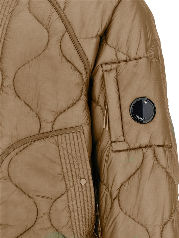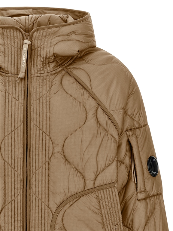 Padded jacket made of 7-denier matte micro-ripstop quilted nylon. The lightweight and transparent fabric emphasizes the garment's structure. The jacket features the iconic C.P. Company Lente logo, a full two-way zip, side pockets with flaps, and an adjustable hood. Padded with Primaloft® Silver wadding, an insulating solution with excellent thermal and breathable properties. Regular fit.
