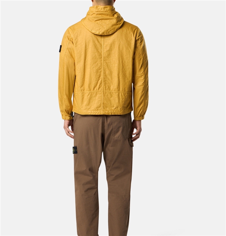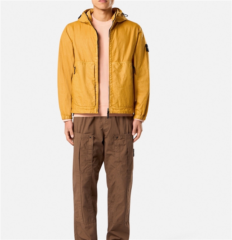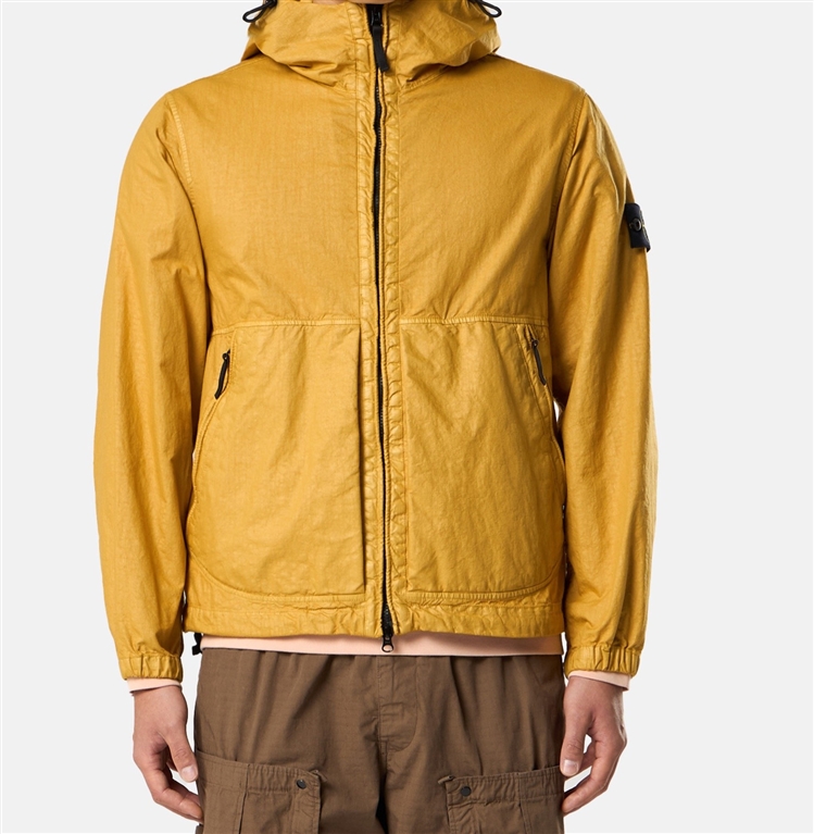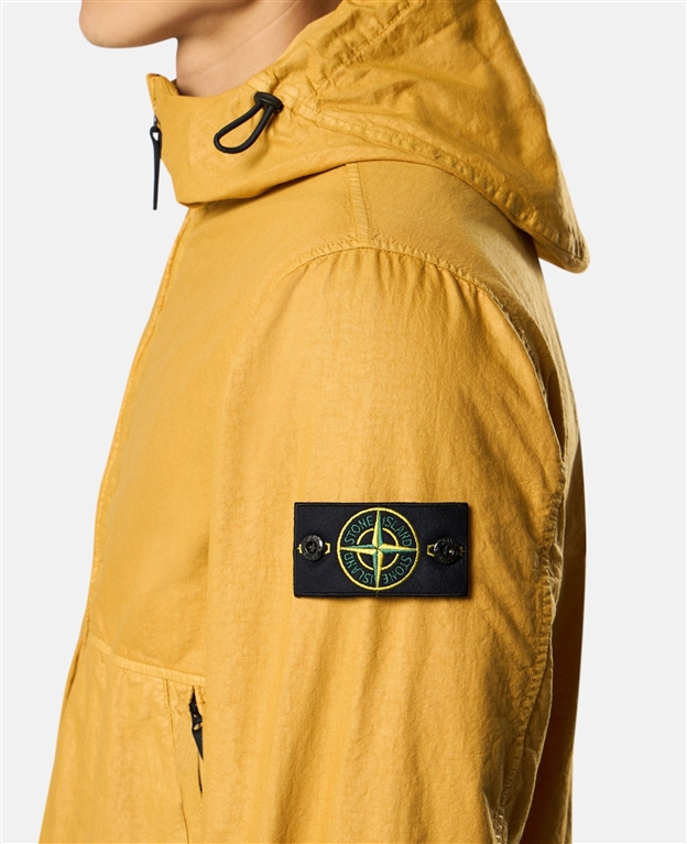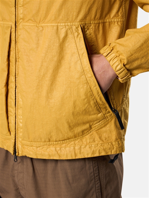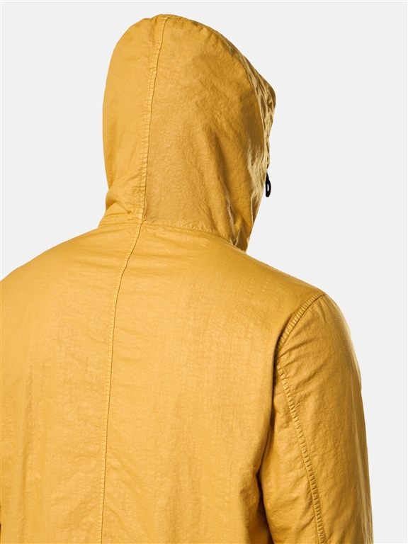 Hooded jacket in an innovative Nylon Panama fabric designed to imitate natural fibers while offering greater lightness and resistance, equipped with zip pockets and elasticated cuffs. Garment-dyed model. Hooded jacket in an innovative 100% nylon fabric Made in Japan with a sensational natural look. The wafer-thin nylon extrusions are cut, blended, blown, carded, twisted and spun to mimic natural fibers. This is how the Panama woven calendered fabric was born, lighter and more resistant than natural fabrics. Furthermore, thanks to the uneven penetration of the color into the calendered fabric, the garment dyeing process gives the surface of the fabric a marbled appearance. Garment dyed with specific recipes with the addition of a special anti-drop agent.