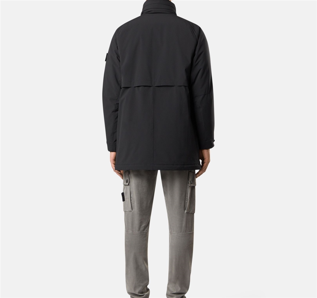 Long coat in 3 -layer technical material with waterproof and windproof membrane and primaloft® Gold P.U.R.E ™ padding, characterized by retractable hood and double cursor zip. Head treated with anti -calendar. Lunger cork with 3 -layer technical cap with 8000 mm water column. The external side in 100% recycled polyester stretch canvas is fabric with yarns that use the E.Dye® Waterless Color System ™ technology: an innovative system of saturation of the color of the yarn that reduces water consumption by 85% and the use of chemicals during the dyeing process by 90%. The fabric is laminated on a waterproof and windproof breathable internal membrane. The structure of the material offers unparalleled comfort and flexibility. The garment is padded with an internal layer of Primaloft® Gold P.U.R.E ™, an exclusive 100% fiber mixture recycled with extremely reduced diameter, which guarantees higher thermal performance. And, among all the synthetic insulating materials, it offers the highest heat-penis ratio. The boss is treated with a special anti -pitch agent.