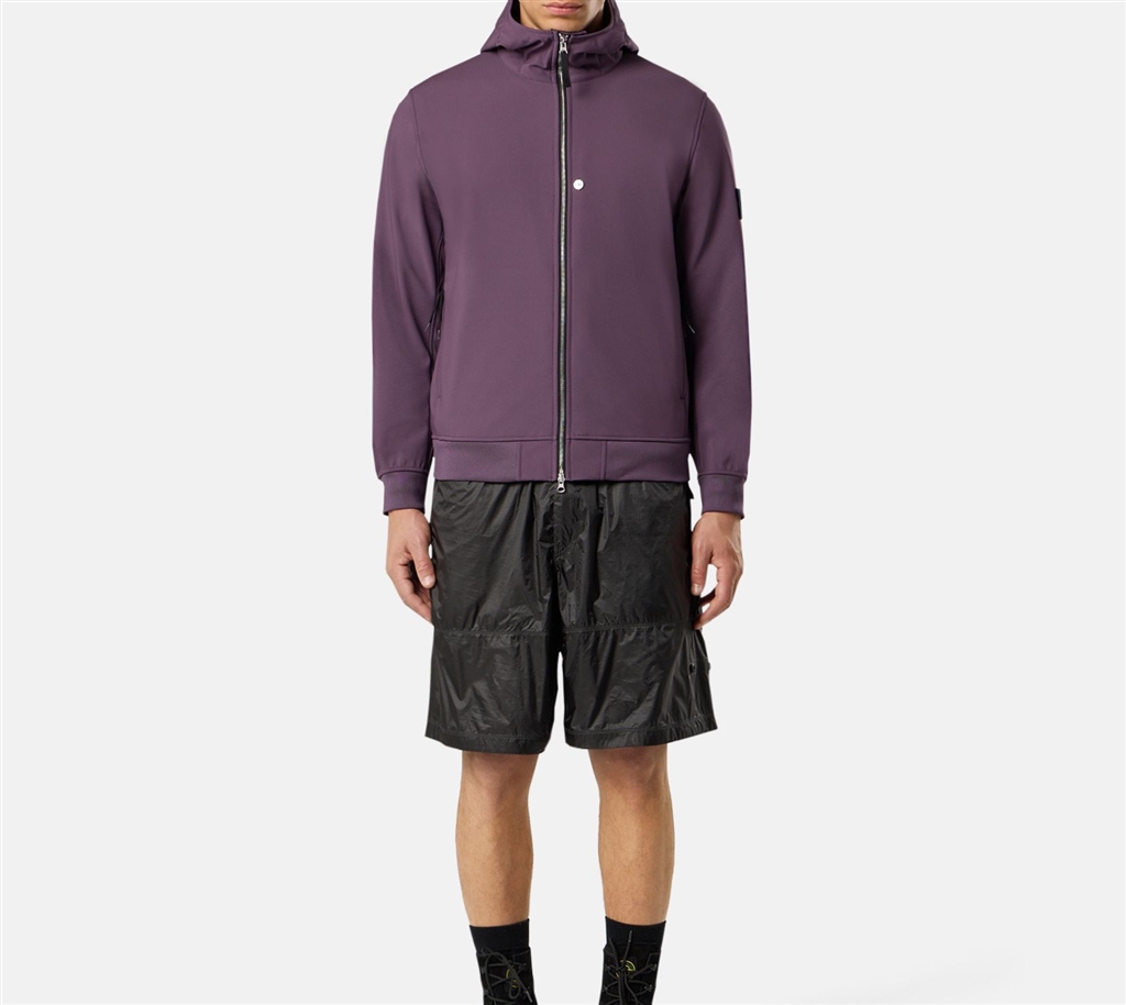 Light hooded jacket in 3 -layer technical material with 8000 mm water column. Wind -resistant membrane, polyester stroke layer, pockets and double cursor zip closure. Light 3 -layer technical hooded cap with 8000 mm water column. The external surface in Stretch polyester canvas is woven with E.Dye® Waterless Color System ™ technology yarns, an innovative system of saturation of the color of the yarns. The fabric is laminated on a breathable internal membrane and resistant to water and wind, protected by a layer of fleece. The structure of the material gives the garment an extraordinary level of flexibility and comfort.