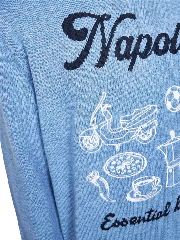 BLUE SWEATER HERON WITH NON VIVO SENZA TEQUILA EMBROIDERY