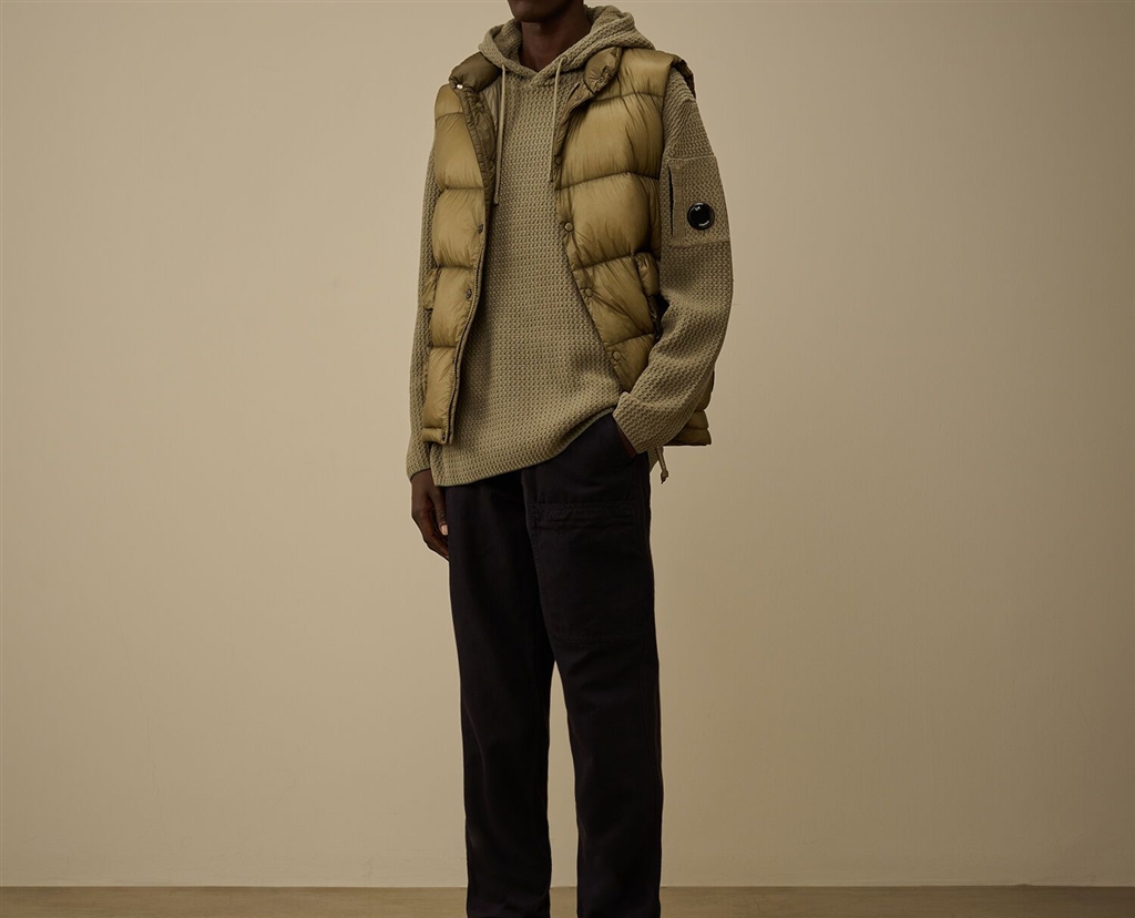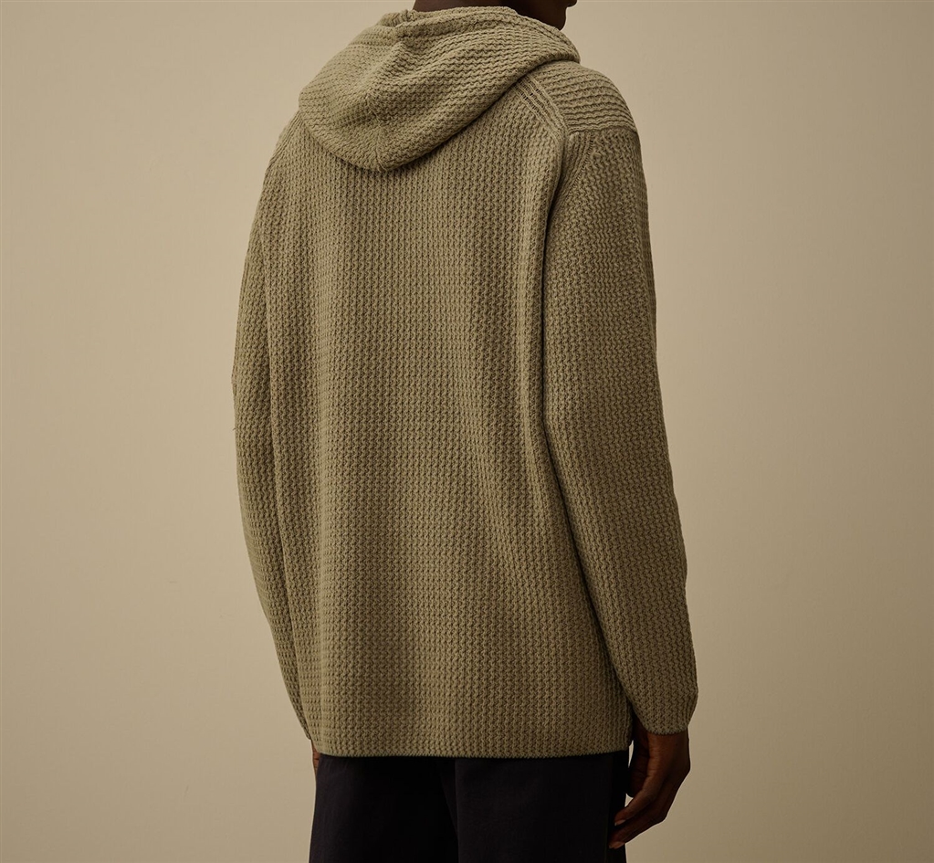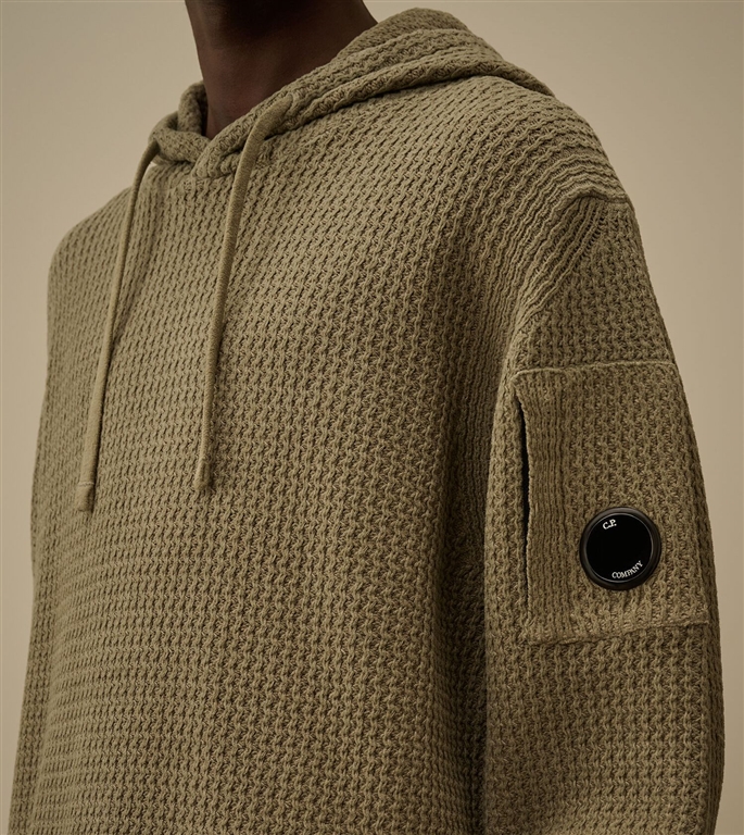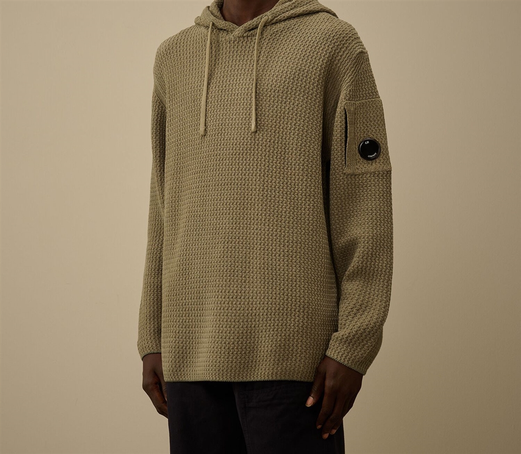 Hooding sweater made of cotton cynille. The model has adjustable hood and the iconic lens of c.p. Company. Dyed in the head. Fineness 5. Regular fit.
