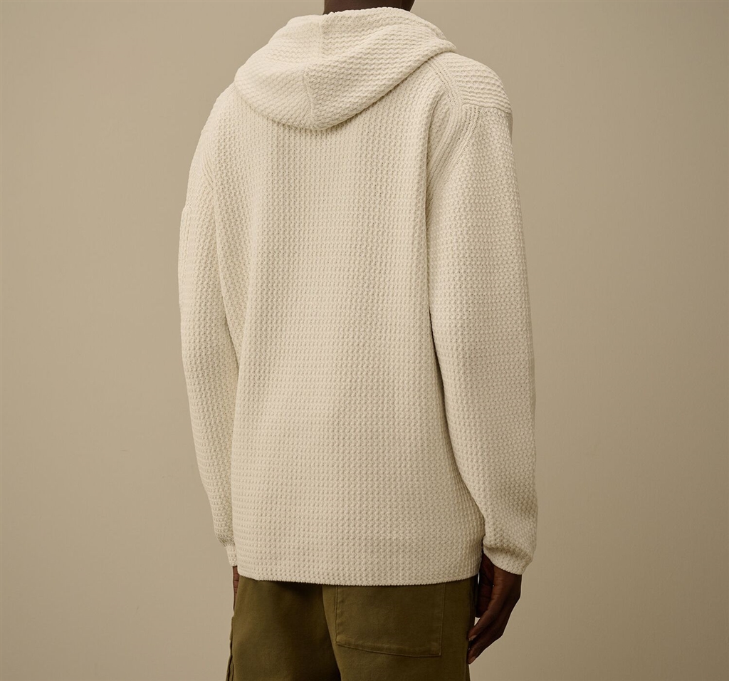 COTTON CHENILLE HOODED SWEATER GAUZE WHITE