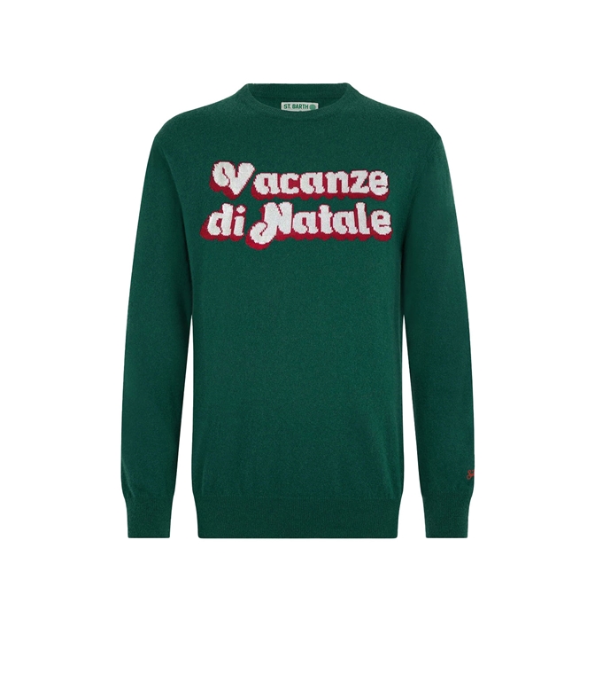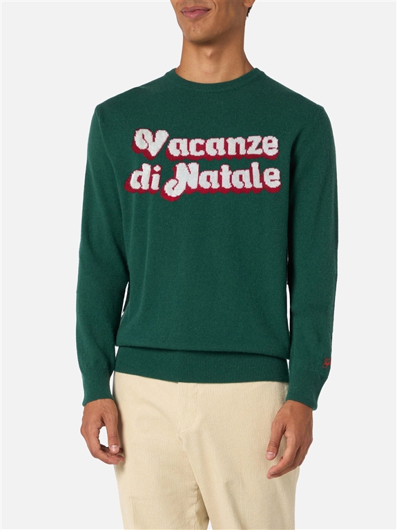 HERON GREEN SWEATER WITH JACQUARD CHRISTMAS HOLIDAY LOGO