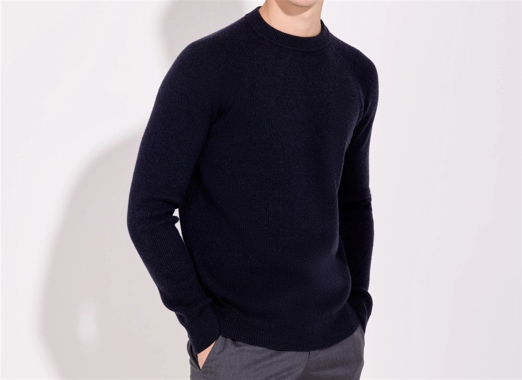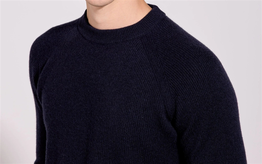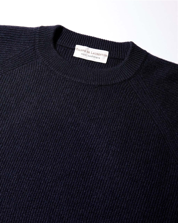 WOOL CASHMERE RAGLAN CREW NECK SWEATER NAVY BLUE