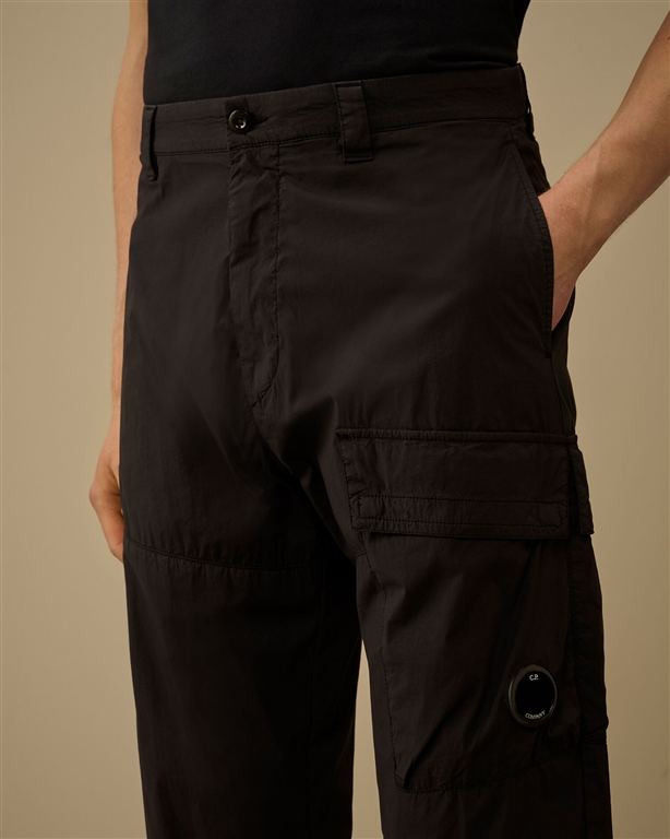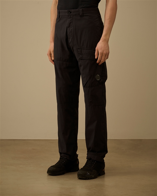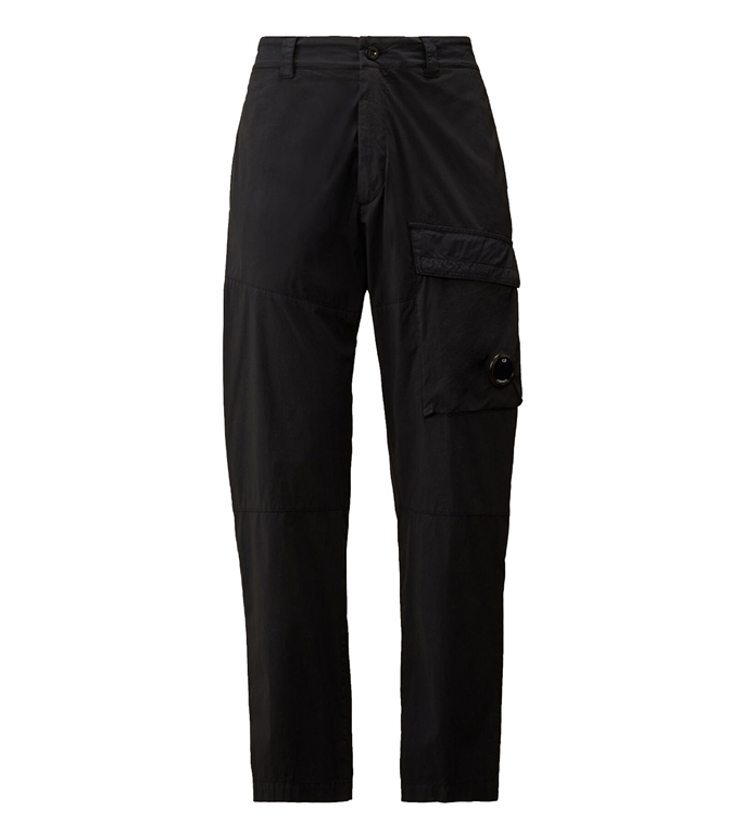 Cargo trousers made of 50 Fili Stretch, an evolution of C.P.'s iconic nylon/cotton fabric. Company, updated with stretch nylon to offer greater comfort and freedom of movement. The model features a button and zip closure and belt loops. The design is completed with side pockets, cargo pockets with flaps, snap buttons and the iconic C.P. Lens. Company, and rear welt pockets with button and applied logo label. The trousers are garment dyed to obtain unique color intensities that enhance with time and use. Regular fit.