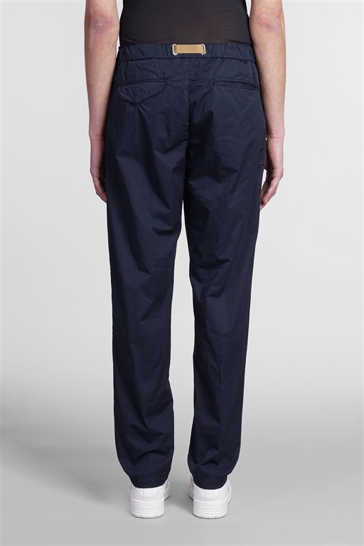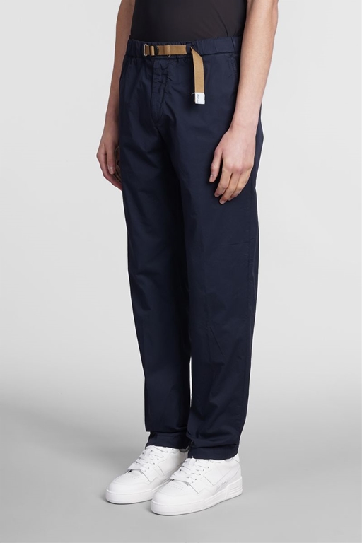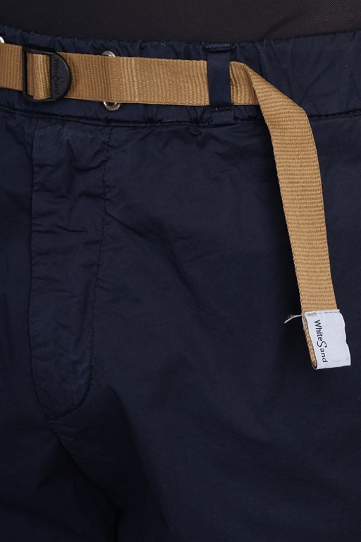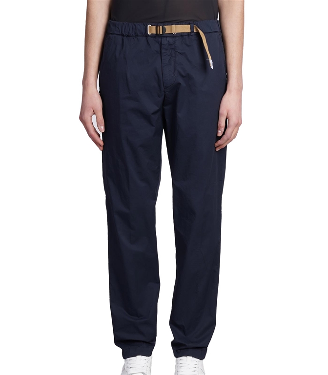 Medium-waisted long trousers with button closure and belt, side pockets, 97% cotton 3% elastane fabric.