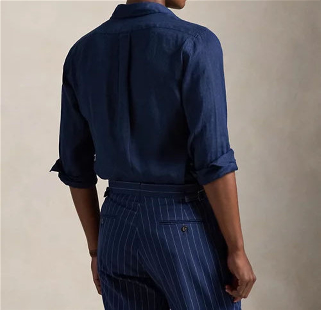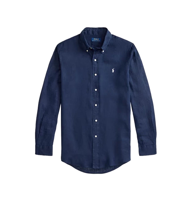 Lightweight, breathable linen makes this shirt perfect for warmer days. Custom-Fit: A tailored silhouette, halfway between the Classic Fit and Slim Fit styles. Fitted waist. Size M has a 31.5" back length, 18.5" shoulder, 44.5" chest, and 34.5" sleeve length. Sleeve length is measured from the center back of the neck and varies by 1" depending on size. Button-down collar. Button placket. Long sleeves with buttoned cuffs. Split back yoke with box pleats for a comfortable fit and greater freedom of movement. Signature embroidered pony on the left chest. 100% linen. Machine washable. Imported.
