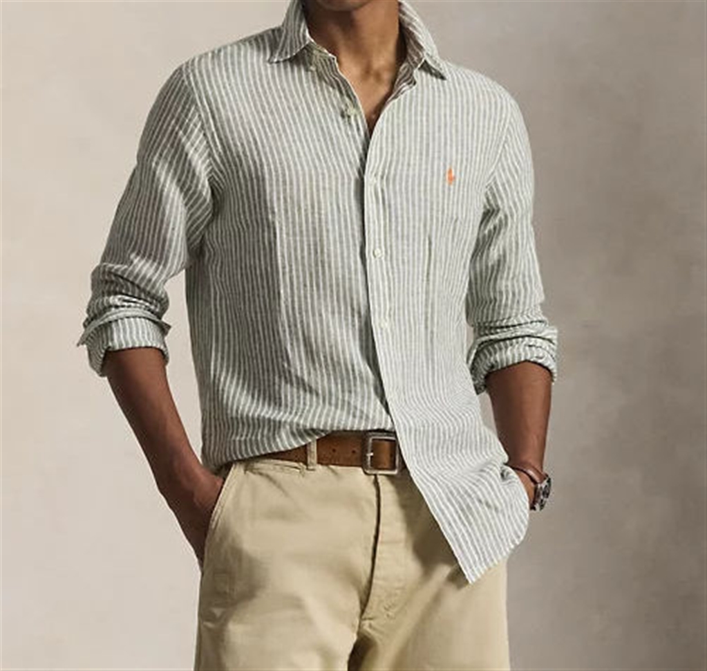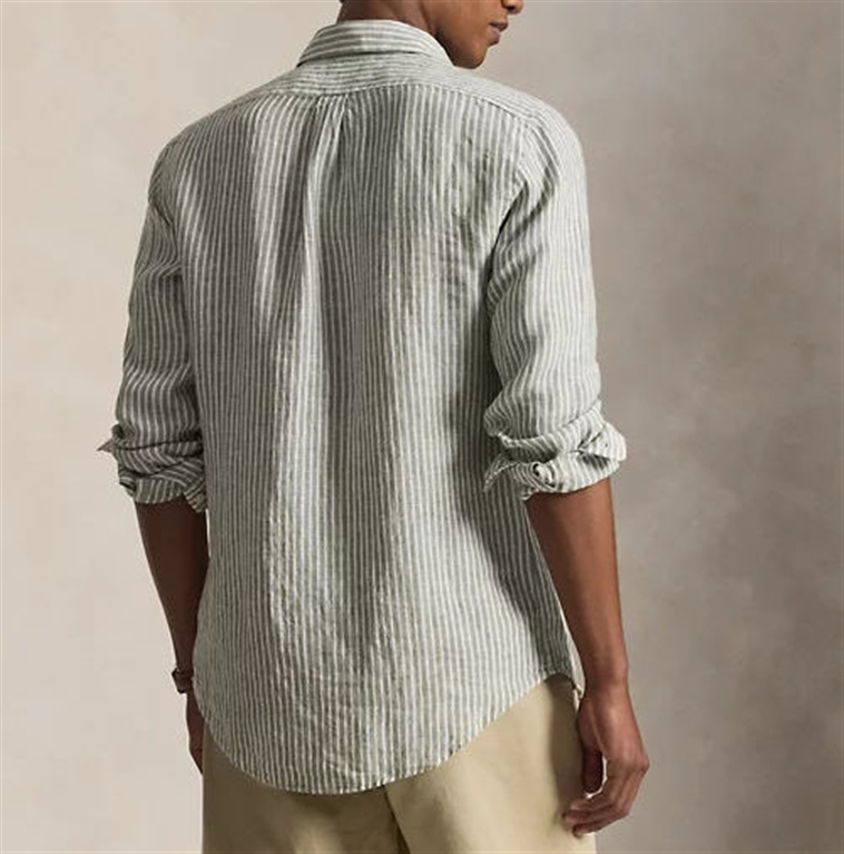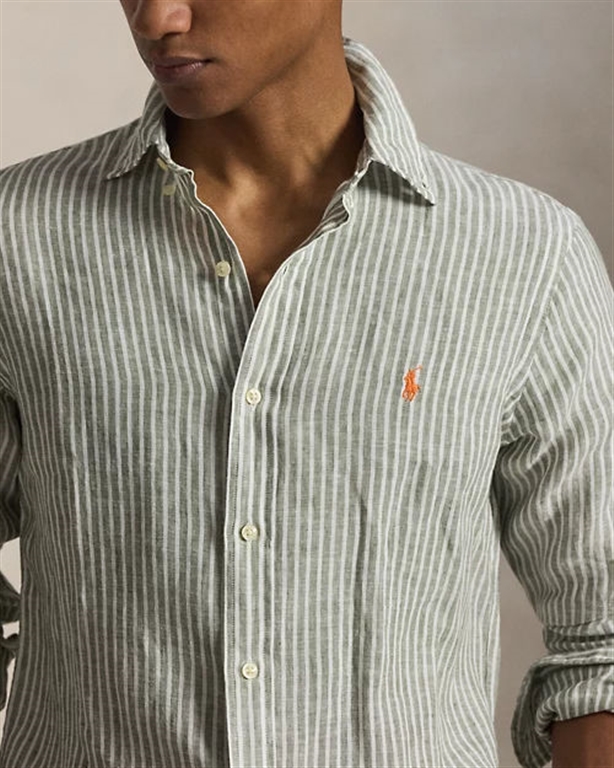 Crafted from lightweight, breathable linen, this striped shirt is perfect for warm days. It's finished with our signature pony, meticulously embroidered on the left chest. Custom-Fit: A tailored silhouette, halfway between our Classic Fit and Slim Fit styles. Fitted waist. Size M has a 31.5" back body length, a 18.5" shoulder, a 44.5" chest, and 34.5" sleeves. Sleeve length is measured from the center back of the neck. Pointed button-down collar. Button placket. Long sleeves with buttoned cuffs. Split back yoke with box pleats for a comfortable fit and greater freedom of movement. Signature embroidered pony on the left chest. 100% linen. Machine washable. Imported.