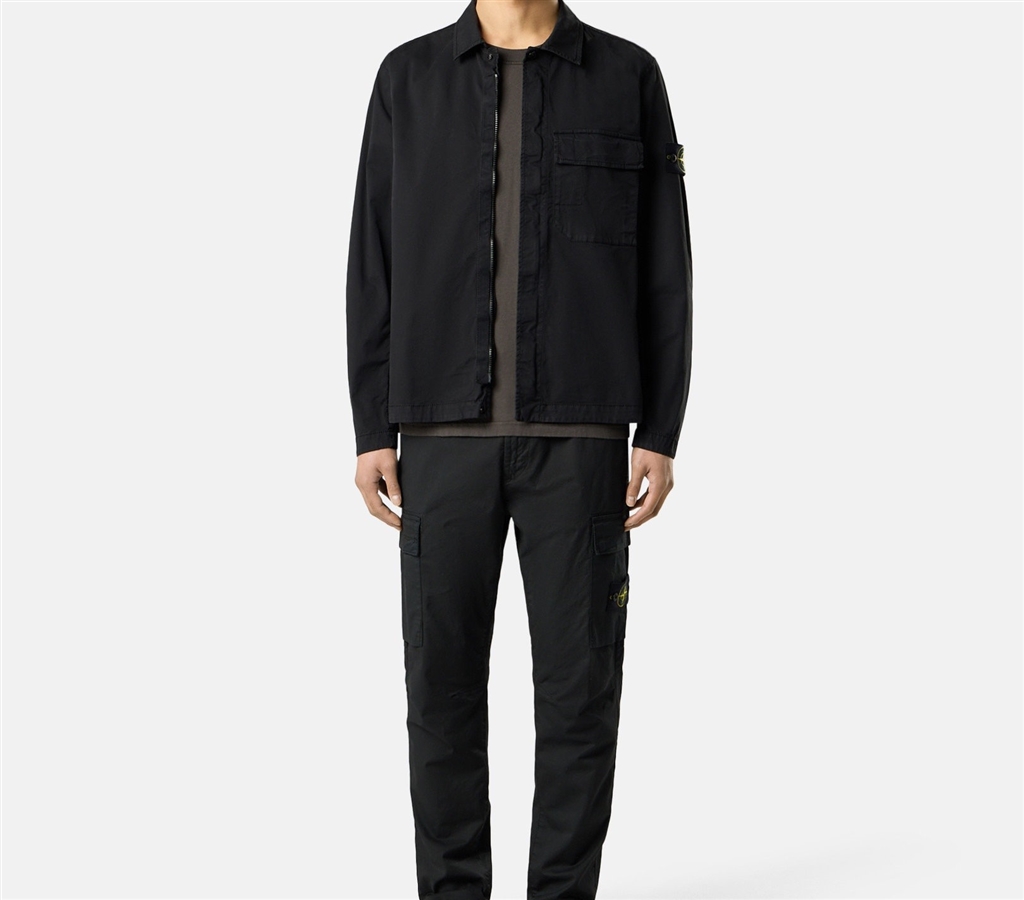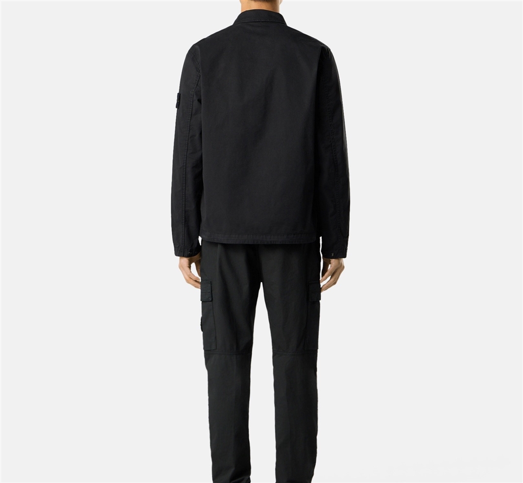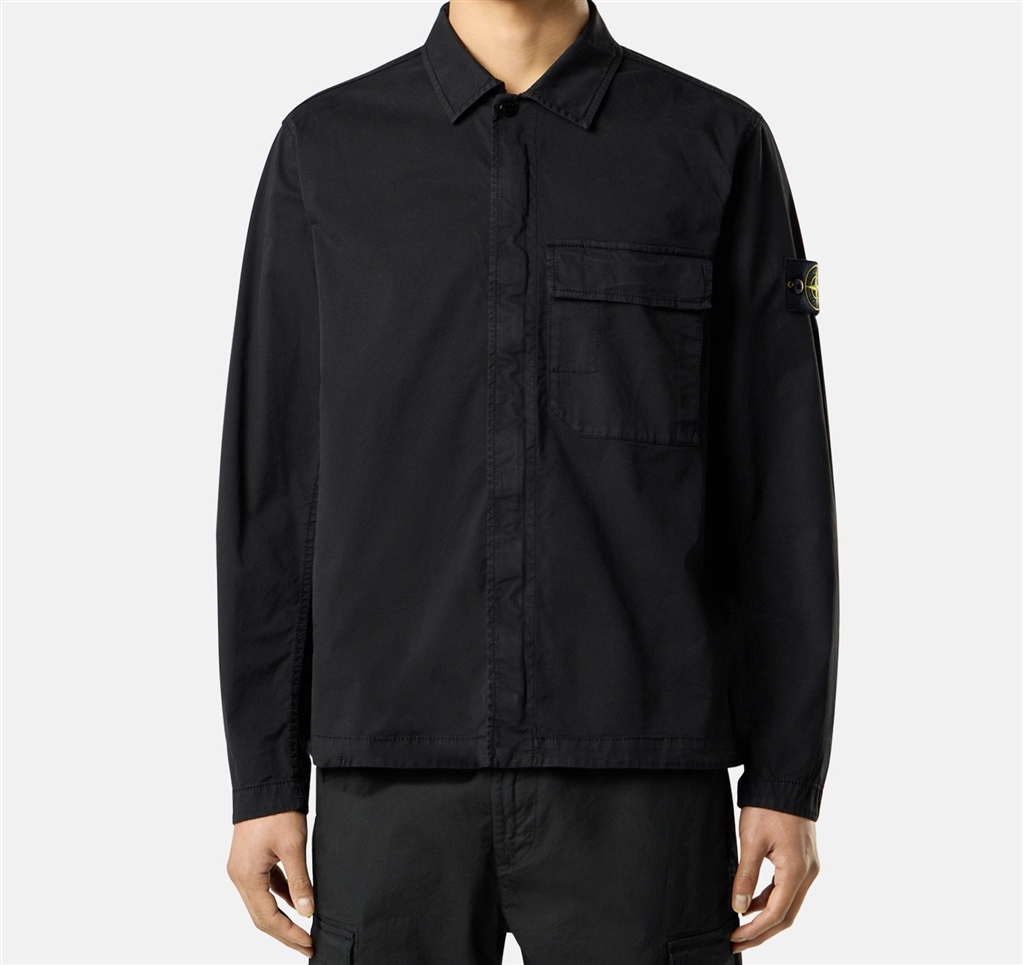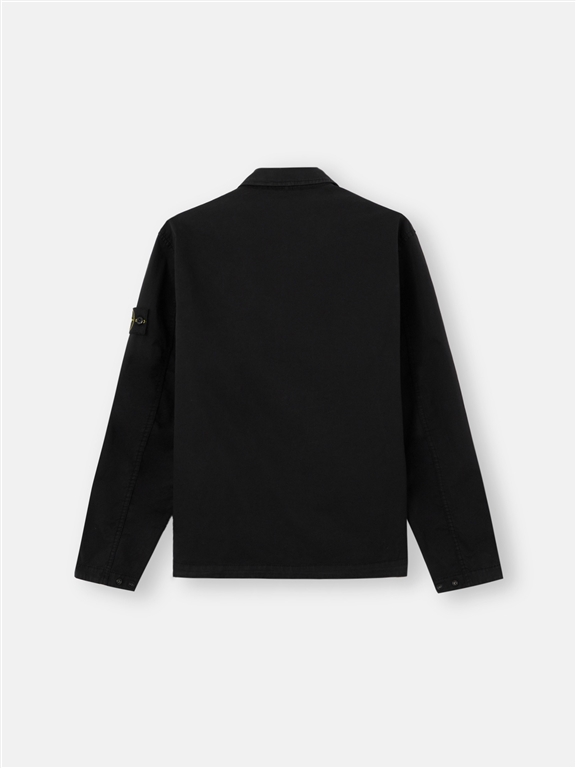 Stretch organic cotton twill overshirt featuring a chest pocket with snap button, adjustable cuffs with snap buttons and a hidden two-way zip closure. Garment-dyed model. Stretch organic cotton twill overshirt. Garment dyed model.