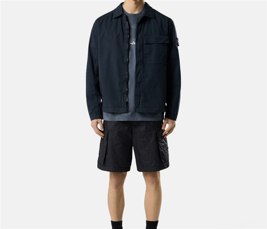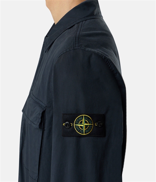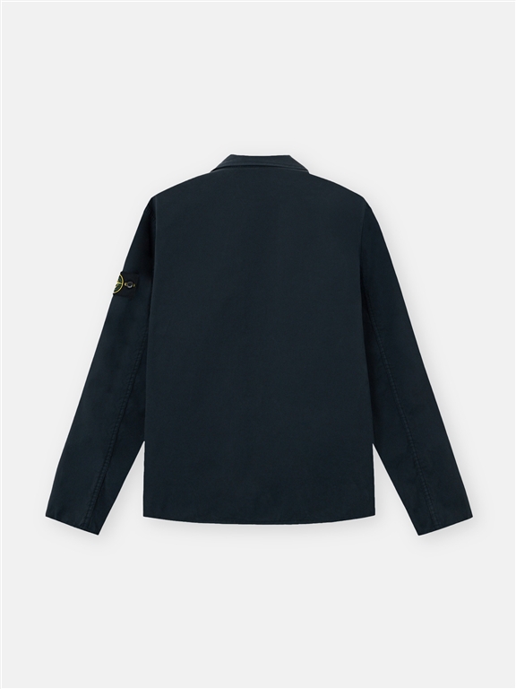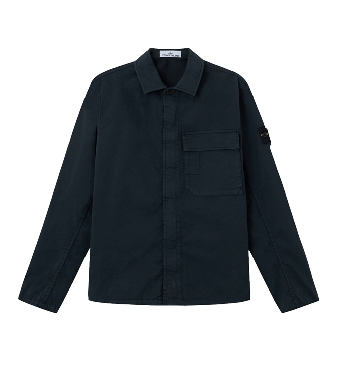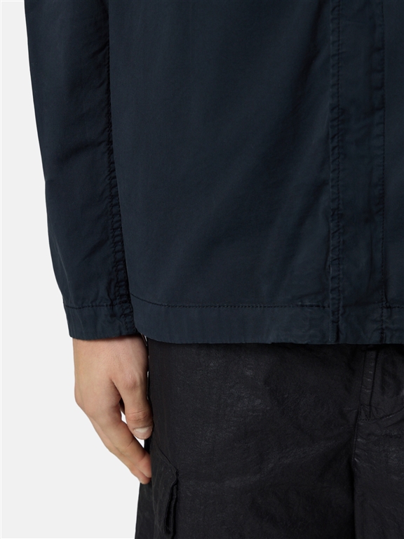 Stretch organic cotton twill overshirt featuring a chest pocket with snap button, adjustable cuffs with snap buttons and a hidden two-way zip closure. Garment-dyed model. Stretch organic cotton twill overshirt. Garment dyed model.