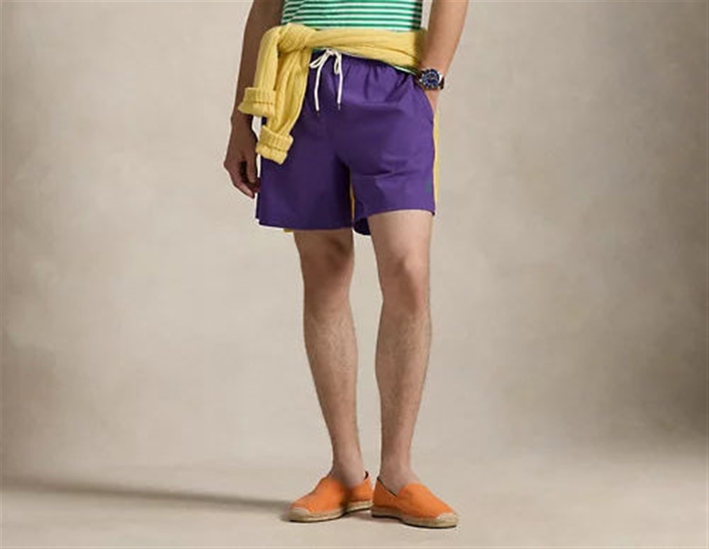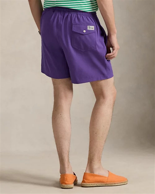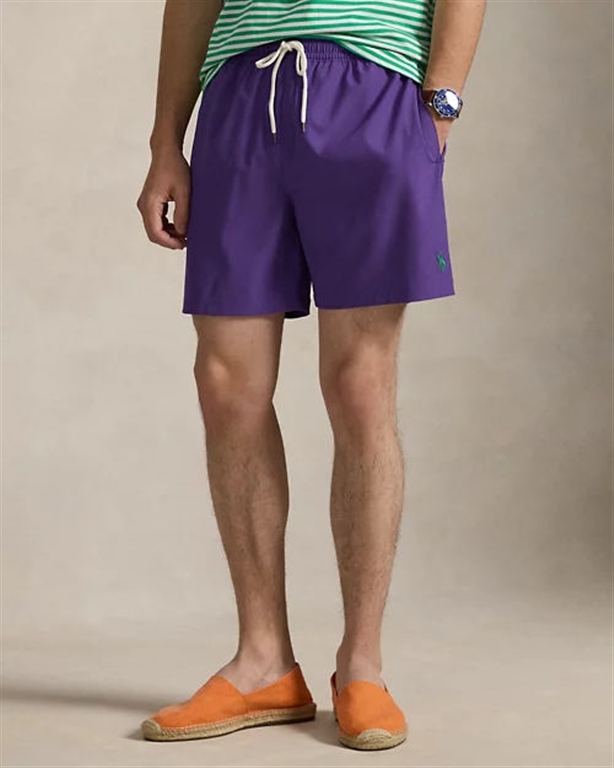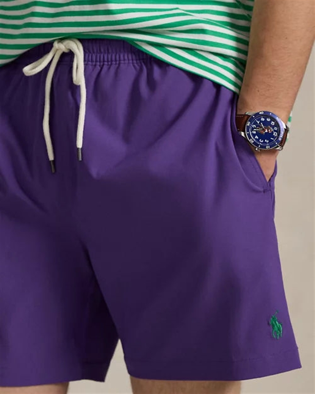 These mesh-lined swim briefs are made with a high level of stretch and feature our signature embroidered pony. Classic Fit: Natural waist. Relaxed fit. All sizes have a 14.5 cm inseam. Size M has a 76 cm waist and a 25.5 cm rise. Elastic waistband with drawstring. Side slash pockets. Buttoned pocket on the right back. "Polo Ralph Lauren Swimwear" label on the back pocket. Mesh inner brief. Signature embroidered pony on the left hem. Shell: 90% polyester, 10% elastane. Brief: 100% polyester. Machine washable. Imported.