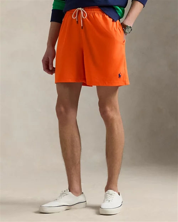 These mesh-lined swim briefs are made with a high level of stretch and feature our signature embroidered pony. Classic Fit: Natural waist. Relaxed fit. All sizes have a 14.5 cm inseam. Size M has a 76 cm waist and a 25.5 cm rise. Elastic waistband with drawstring. Side slash pockets. Buttoned pocket on the right back. "Polo Ralph Lauren Swimwear" label on the back pocket. Mesh inner brief. Signature embroidered pony on the left hem. Shell: 90% polyester, 10% elastane. Brief: 100% polyester. Machine washable. Imported.