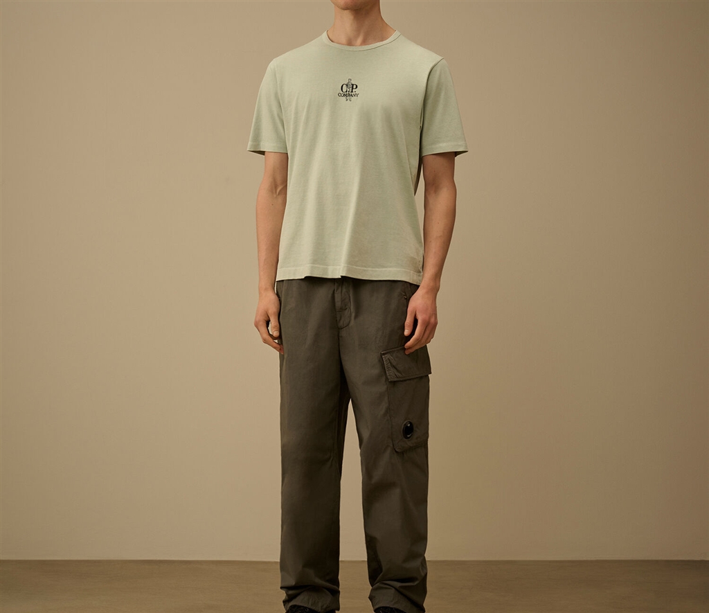 Short-sleeved T-shirt made of 1020 cotton jersey, a soft but compact fabric, which guarantees breathability and a refined texture. The model features a crew neck and logo embroidery on the chest and back. The t-shirt is garment dyed with the 'Old' treatment to obtain a worn look and a unique chromatic depth. Regular fit.