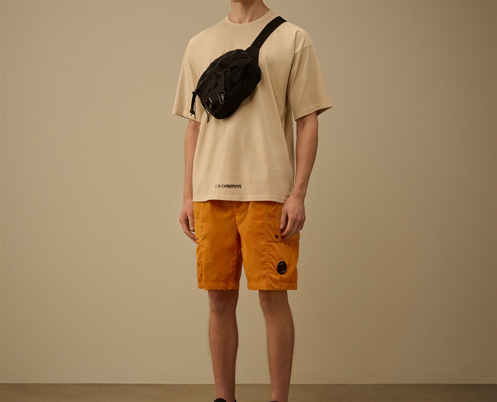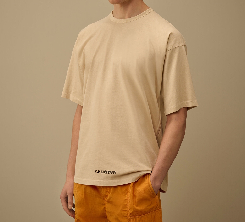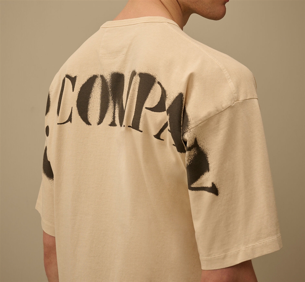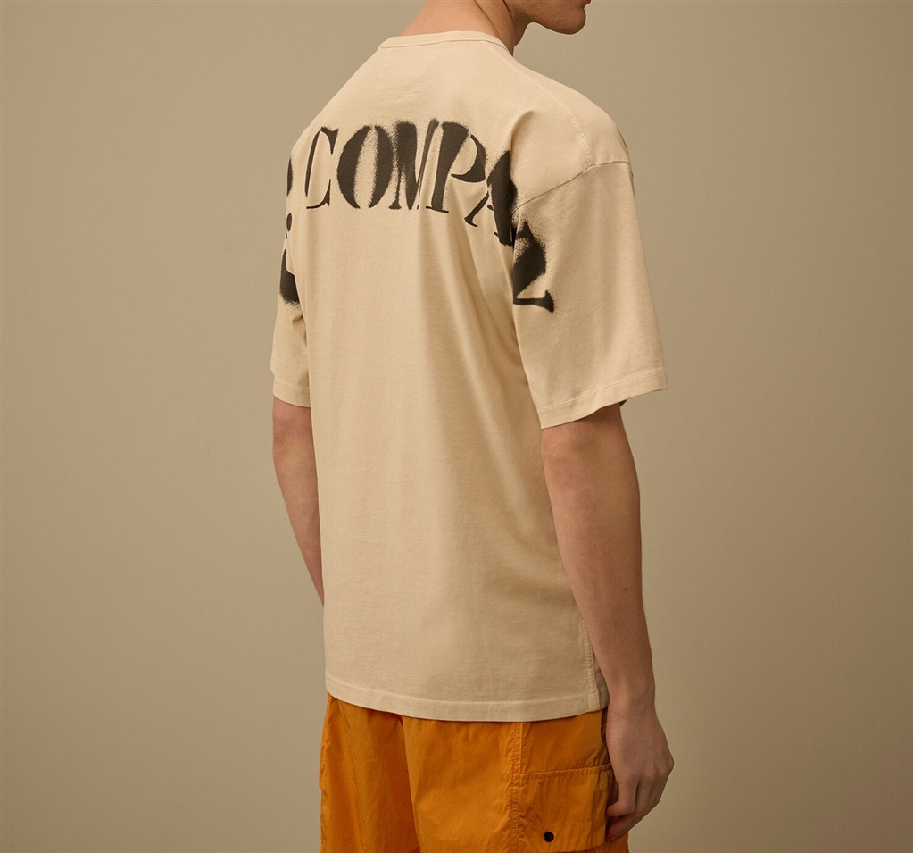 Short-sleeved T-shirt made of 1020 jersey, a soft and breathable cotton fabric. The model features a ribbed crew neck, a logo printed on the hem and a back print with a stencil effect. The t-shirt is garment dyed with the 'Old' treatment to obtain a worn look and a unique chromatic depth. T-fit.